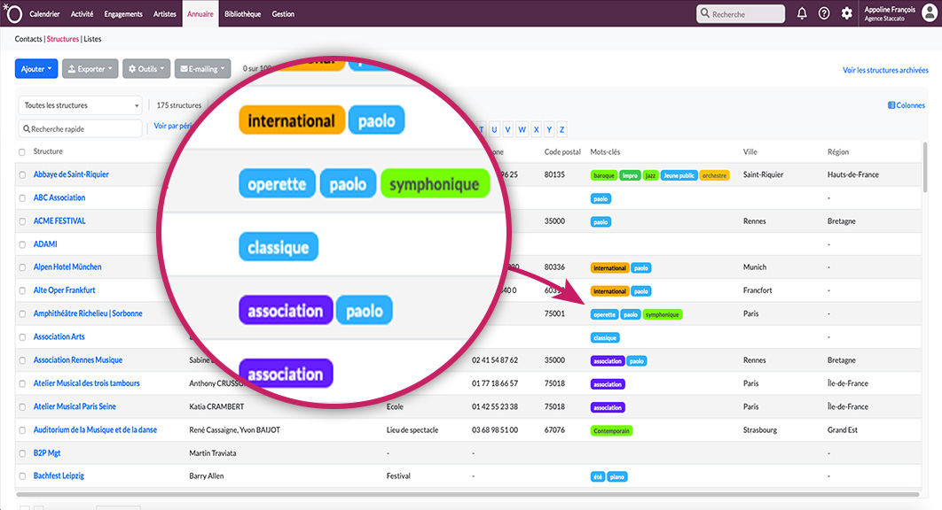 Annuaire de programmateurs, listes de diffusion, suivi des opportunités... Vous disposez de fonctionnalités performantes pour la diffusion de vos artistes.